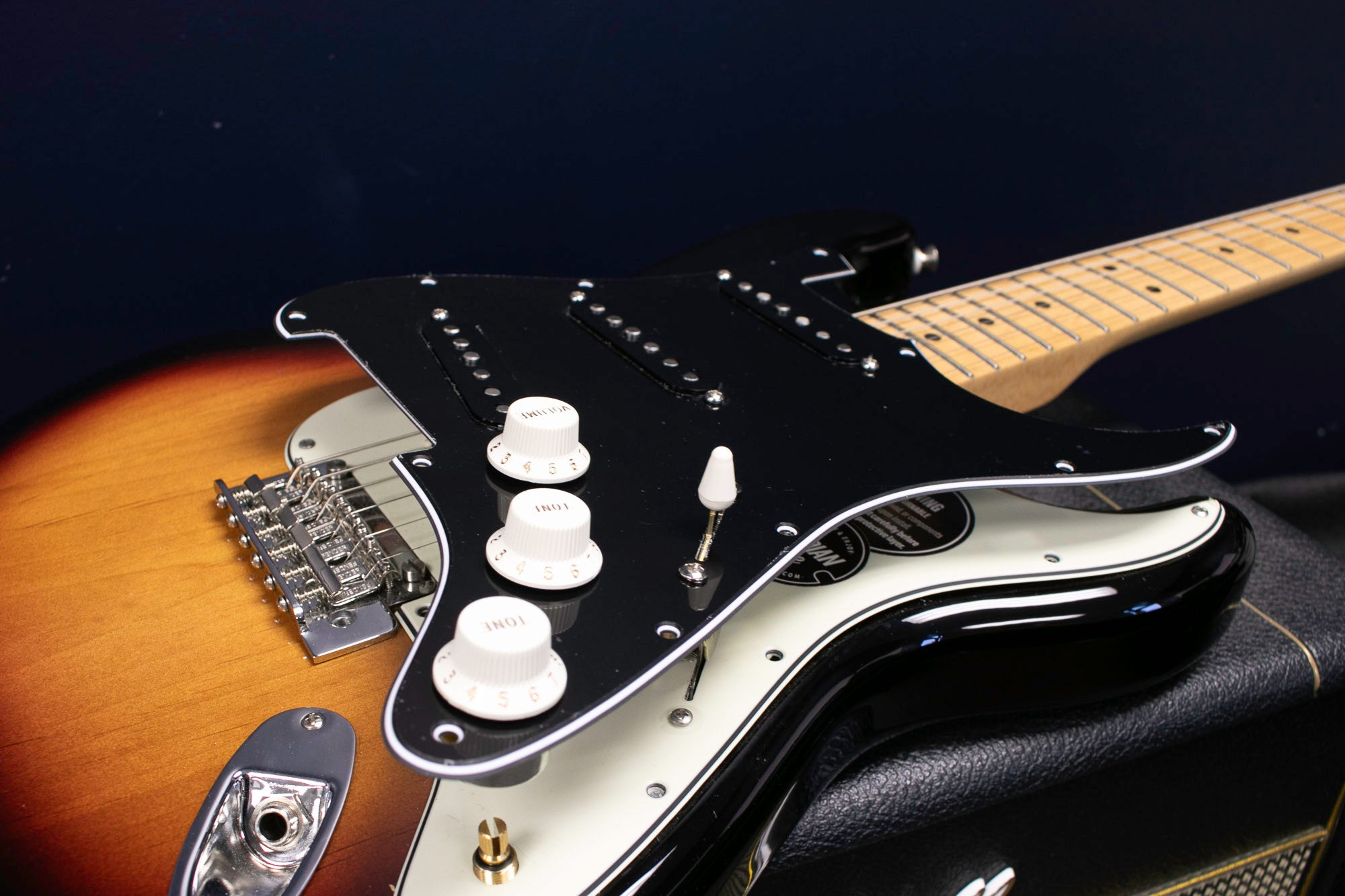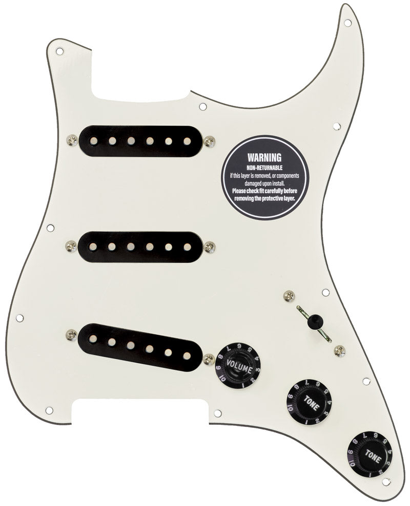 • Loaded Strat parchment white pickguard with parchment white knobs and parchment white pickup covers
