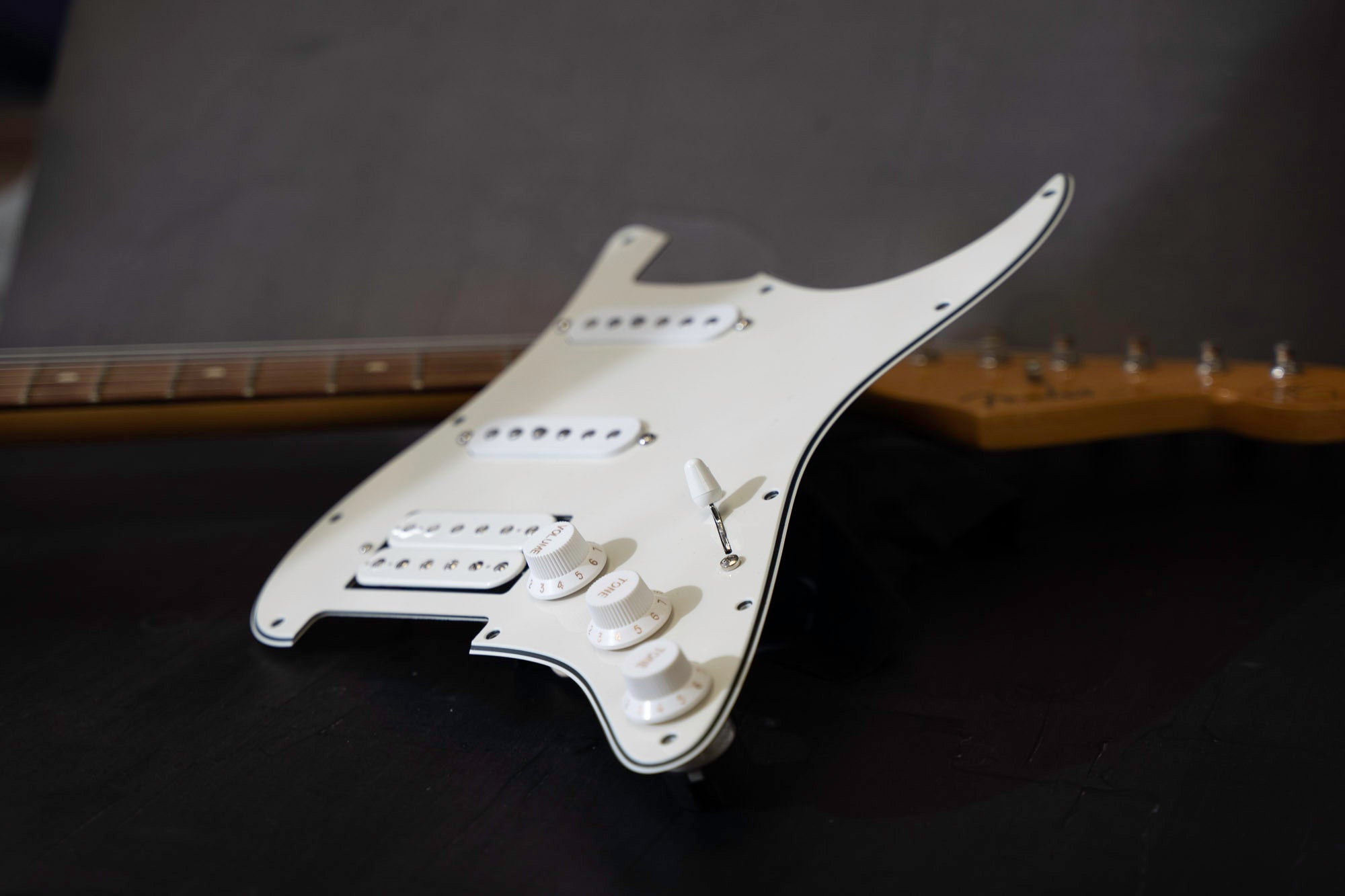 • Loaded Strat parchment white pickguard with aged white knobs and aged white pickup covers