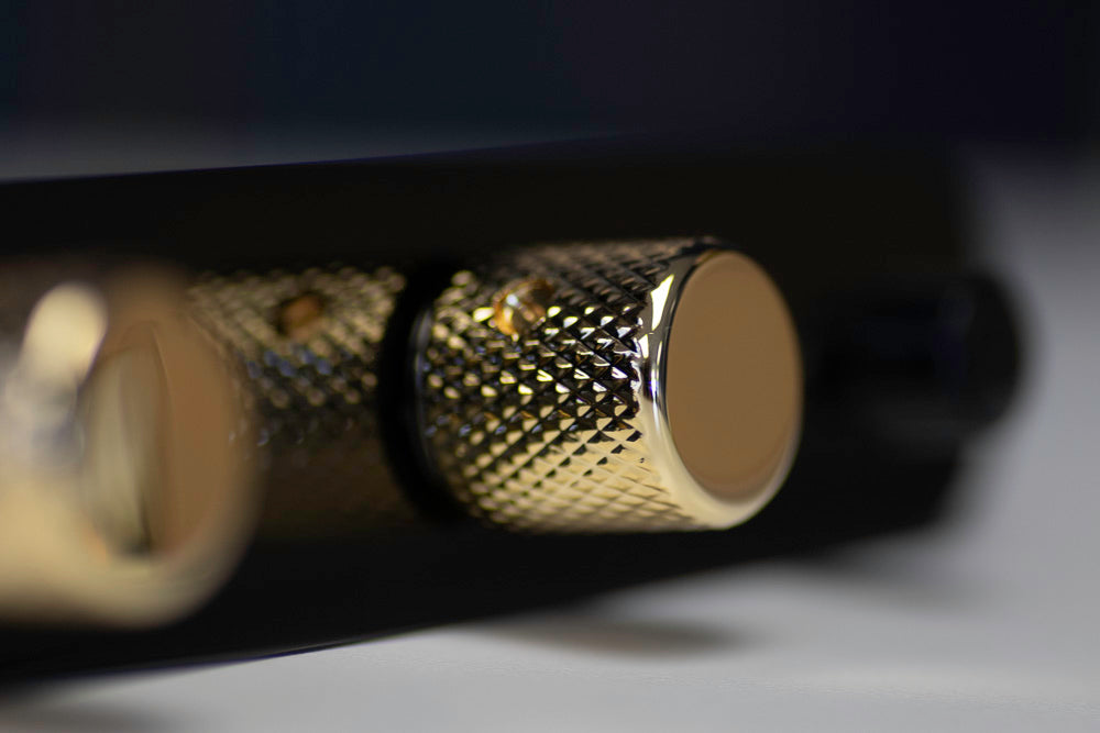 Wählen Sie Ihre eigene ObsidianWire™ Pro-Wired-Elektronik und wir bauen sie zusammen mit einer perfekt passenden Steuerplatte und Knöpfen.