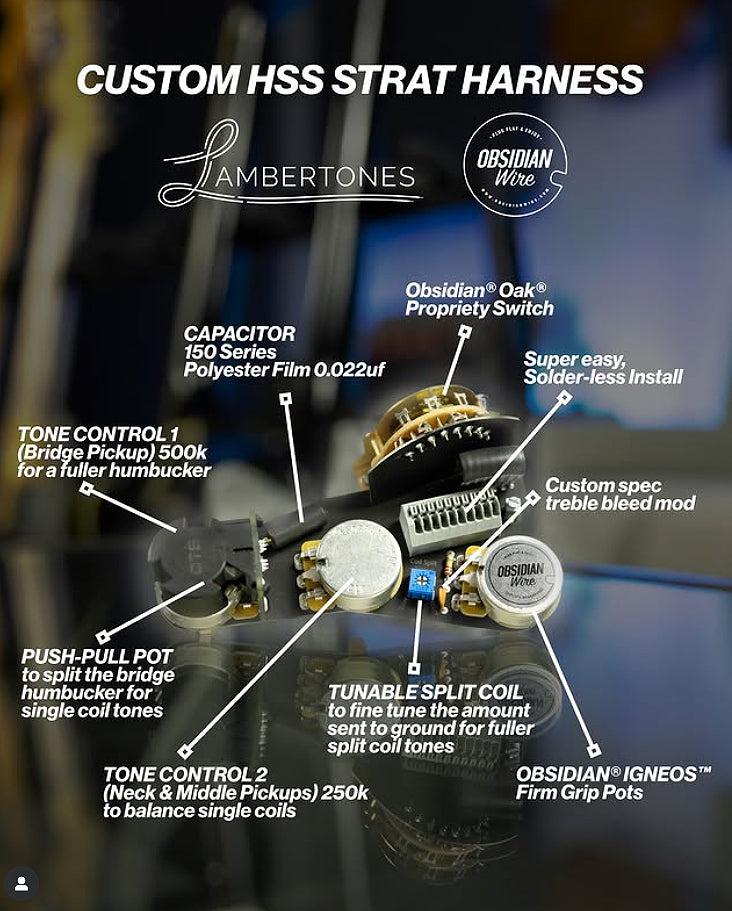 My first ObsidianWire install was in a Tele build. The Custom Universal turned a really good HH sounding guitar to a great one! I was so impressed, that I installed the Custom ‘7 Way’ in my Fender Player Strat, again turning a really good sounding guitar into a great sounding guitar. Easy, neat, solder less install. Love the versatility ObsidianWire adds to the guitars.
