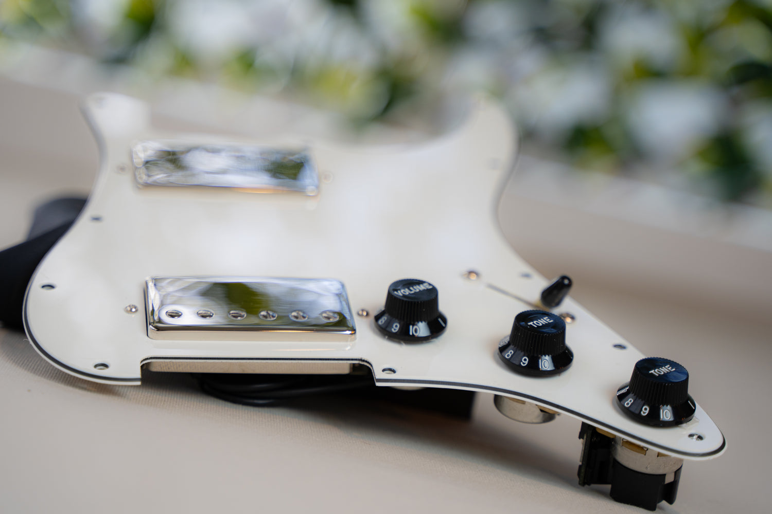 • Installation des micros : vérifiez la compatibilité des micros avant de commander. Les plaques de protection équipées de micros humbucker nécessitent un routage standard pour humbucker.